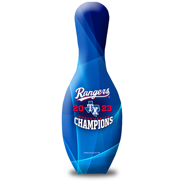 Celebrate the 2023 World Series Championship of the Texas Rangers with this special edition bowling pin.