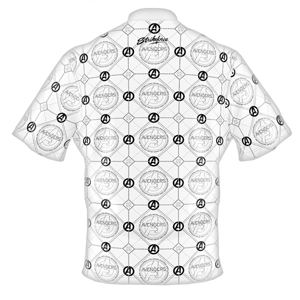 This high-tech Marvel jersey is durable and made from moisture-wicking fabric. It has a sash collar with a 3/4 zip front. The colorful design is dye-sublimated. The jersey is washable in cold water. For best results, not use bleach or fabric softener, air dry. Do not use abrasives to clean the shirt, as they may snag the fabric. The jersey is proudly made in the USA. See chart below for sizing information.