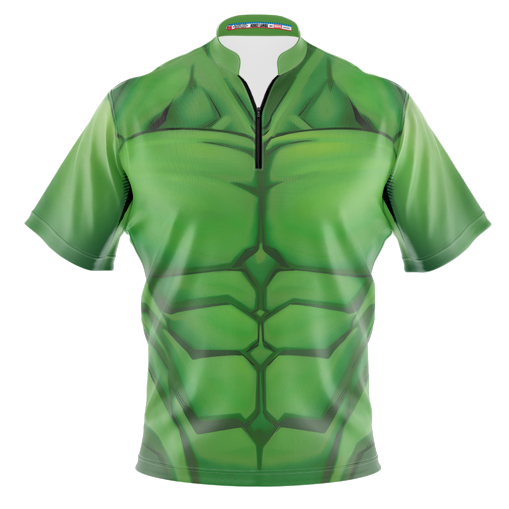 This high-tech Marvel jersey is durable and made from moisture-wicking fabric. It has a sash collar with a 3/4 zip front. The colorful design is dye-sublimated. The jersey is washable in cold water. For best results, not use bleach or fabric softener, air dry. Do not use abrasives to clean the shirt, as they may snag the fabric. The jersey is proudly made in the USA. See chart below for sizing information.