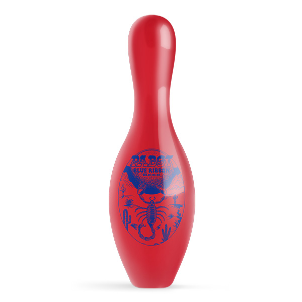 This Pabst Blue Ribbon bowling pin is regulation size.