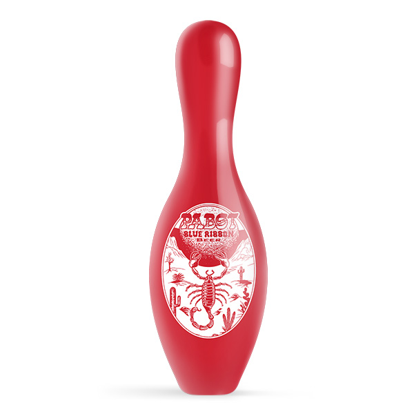 This Pabst Blue Ribbon bowling pin is regulation size.