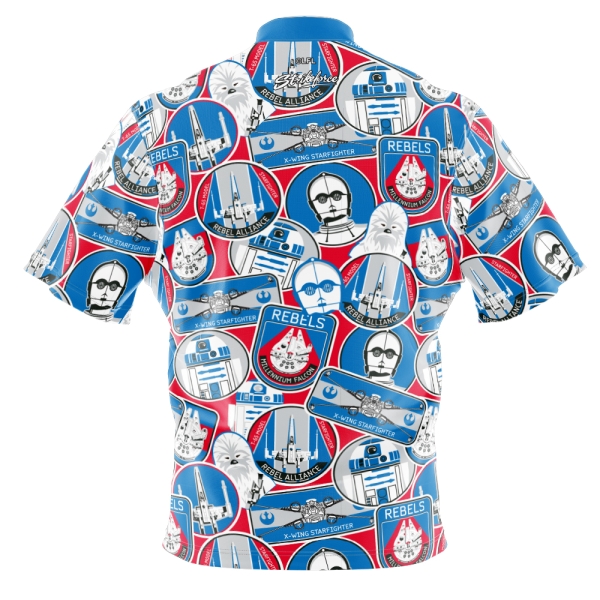 This high-tech Star Wars jersey is durable and made from moisture-wicking fabric. It has a sash collar with a 3/4 zip front. The colorful design is dye-sublimated. The jersey is washable in cold water. For best results, not use bleach or fabric softener, air dry. Do not use abrasives to clean the shirt, as they may snag the fabric. The jersey is proudly made in the USA. See chart below for sizing information.