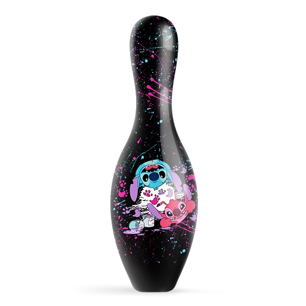 This Disney Stitch Double Trouble bowling pin is regulation size.