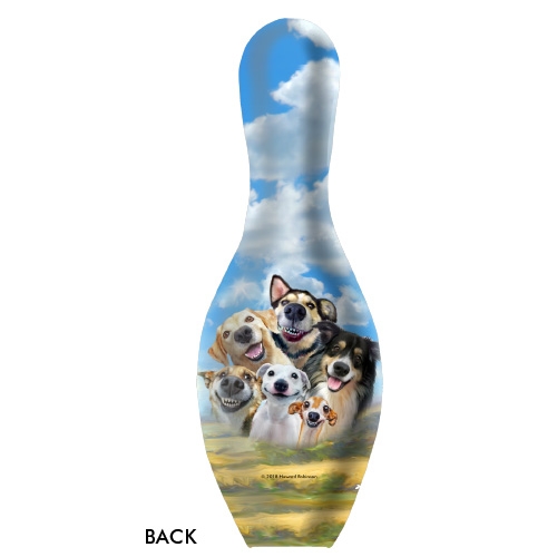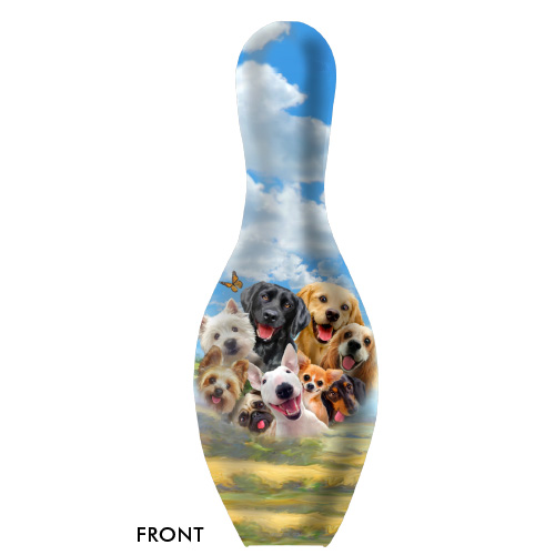 The Dogs Selfie bowling pin is regulation size.