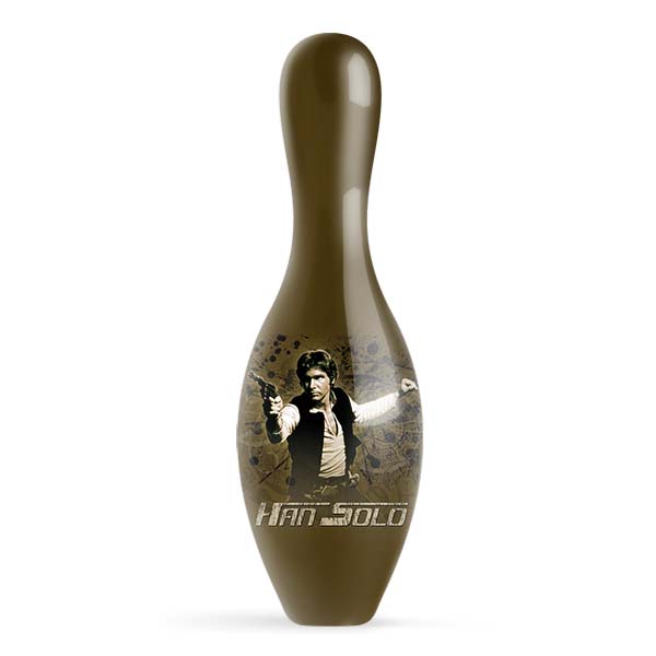 Star Wars heroic smuggler and pirate Han Solo is featured on this regulation size bowling pin.