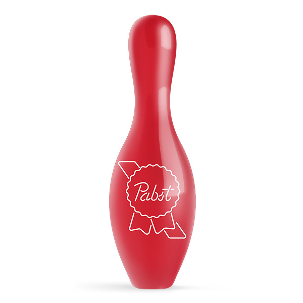 This Pabst Blue Ribbon bowling pin is regulation size.